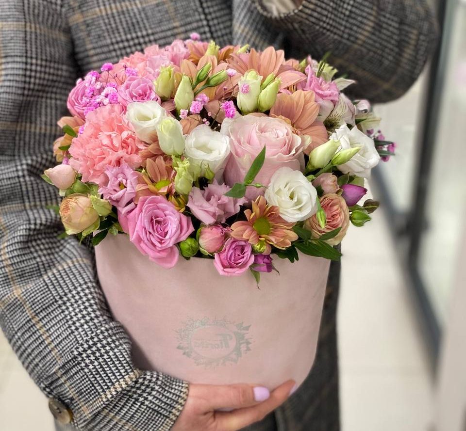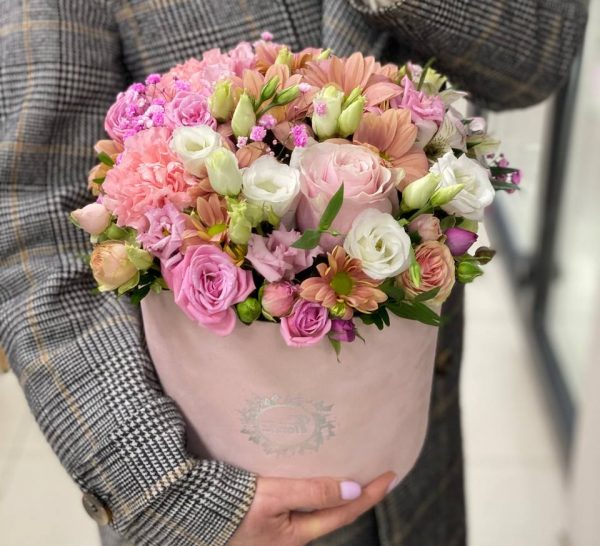 ГлавнаяКомпозицииЦветы в коробке Композиция в шляпной коробке 612