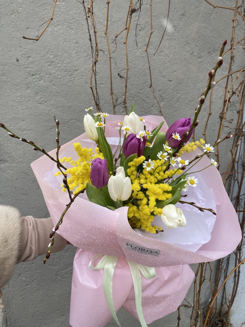 Категорий: 8 марта, Авторский букет, Букеты, Популярные, Тюльпаны