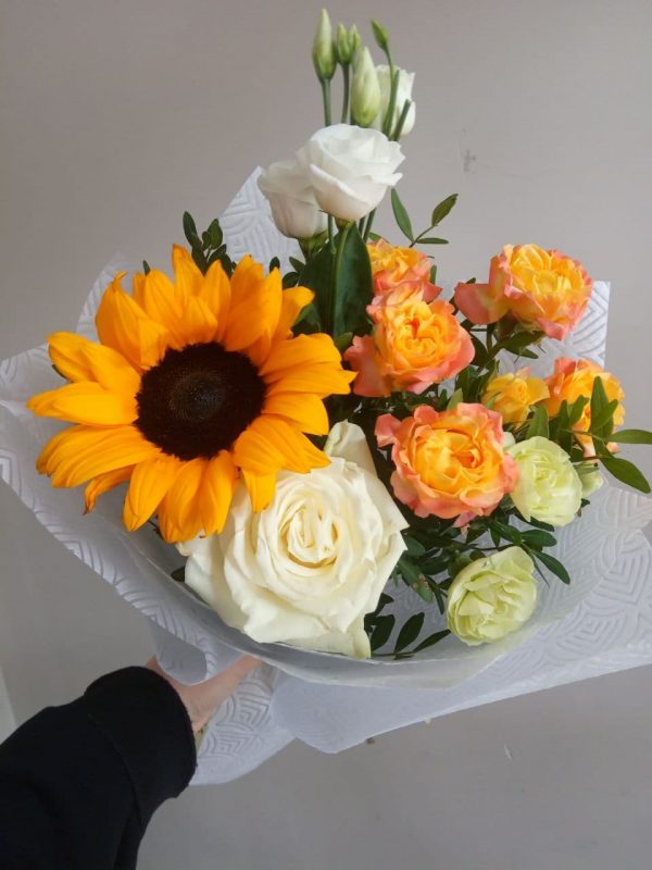 Состав: – подсолнух – кустовая роза – шабо – эустома