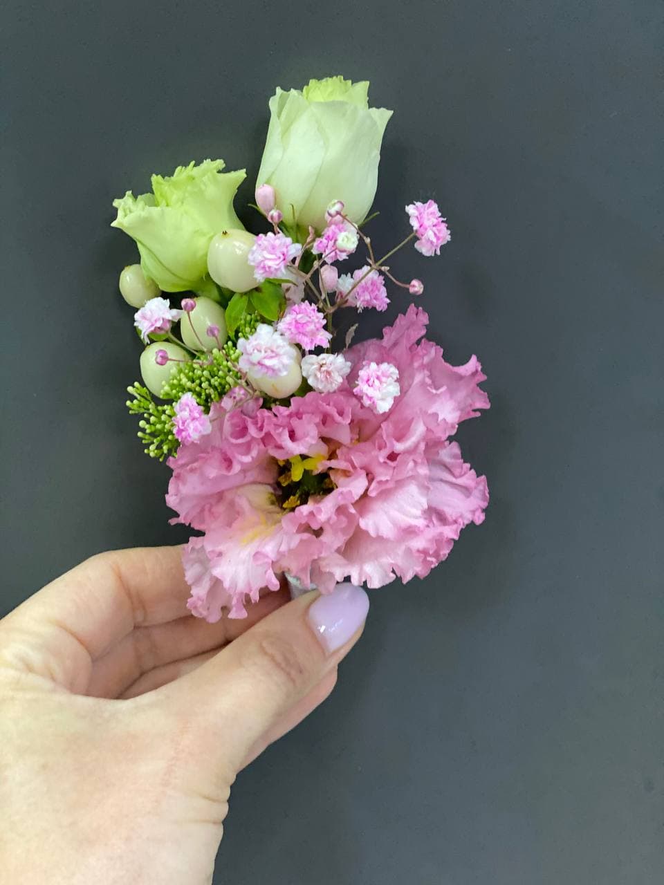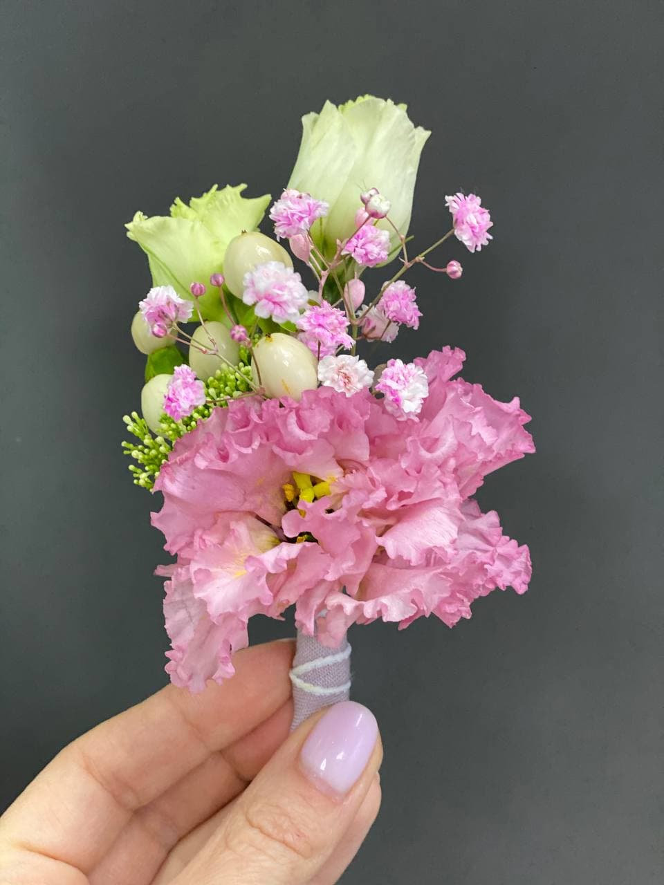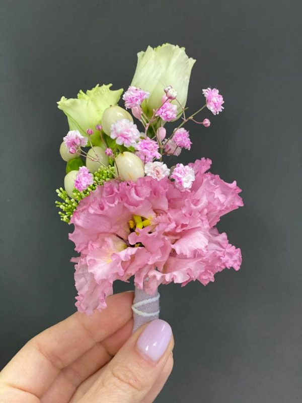 Эустома, гипсофил, гиперикум, трахелиум, лента, булавка