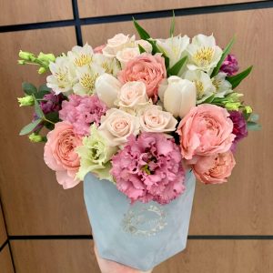 ГлавнаяПраздничные букеты8 марта Композиция в шляпной коробке 611